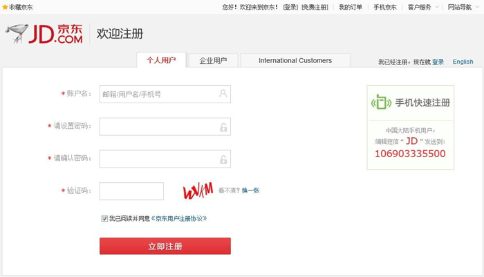 (首先您需要注冊京東“個人用戶”賬號,擁有賬號后才可進行下一步,如您已有個人賬戶則直接輸入您的用戶名密碼登錄即可)
