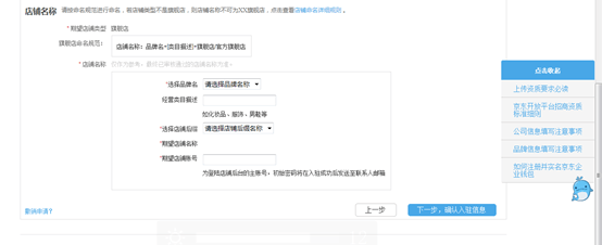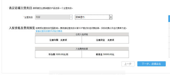 選擇主營二級類目,點擊下一步店鋪命名
