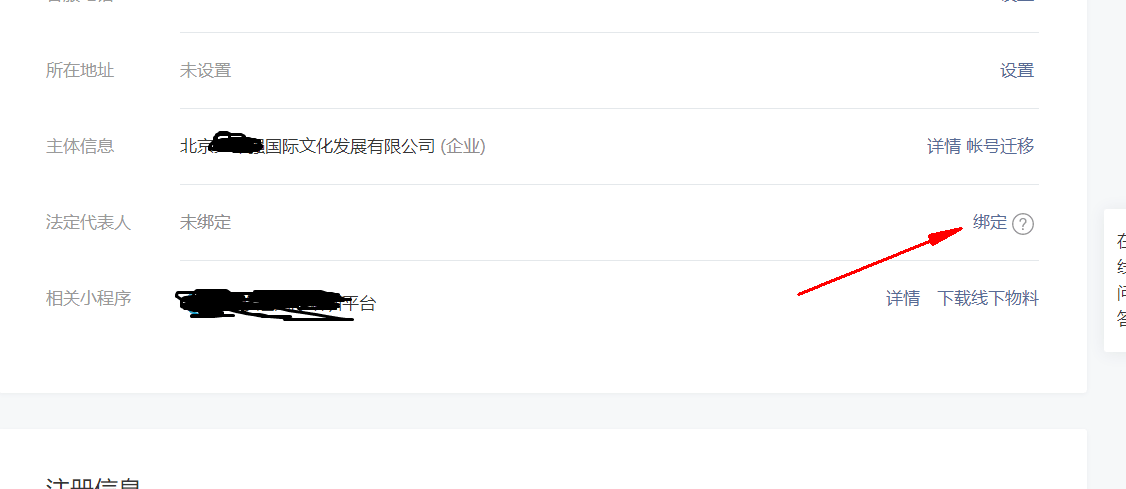 1.登陸微信公眾號后,左側選擇公眾號設置,右側選擇法定代表人,點擊綁定.